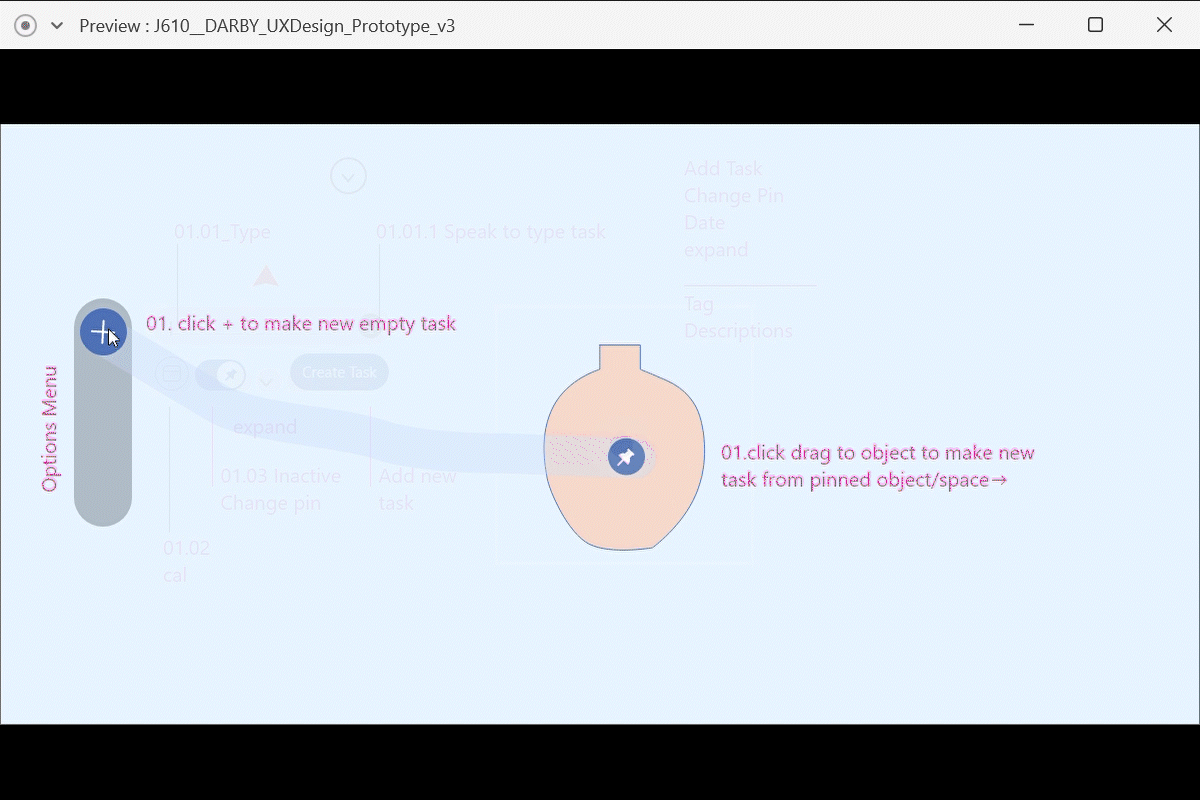 Demo testing user interface for linking virtual tasks to actual objects and spaces.